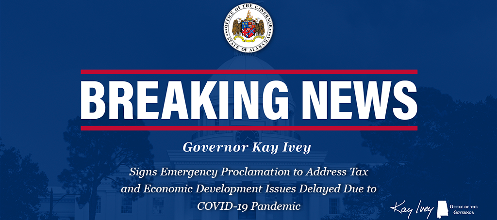 Governor Ivey Signs Emergency Proclamation to Address Tax and Economic Development Issues Delayed Due to COVID-19 Pandemic