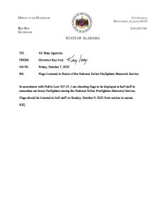 Flag Memo for the National Fallen Firefighters Memorial Service 2022