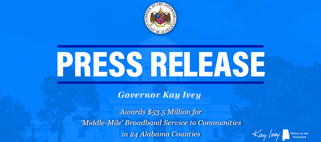 Governor Ivey Awards $53.5 Million for ‘Middle-Mile’ Broadband Service to Communities in 24 Alabama Counties