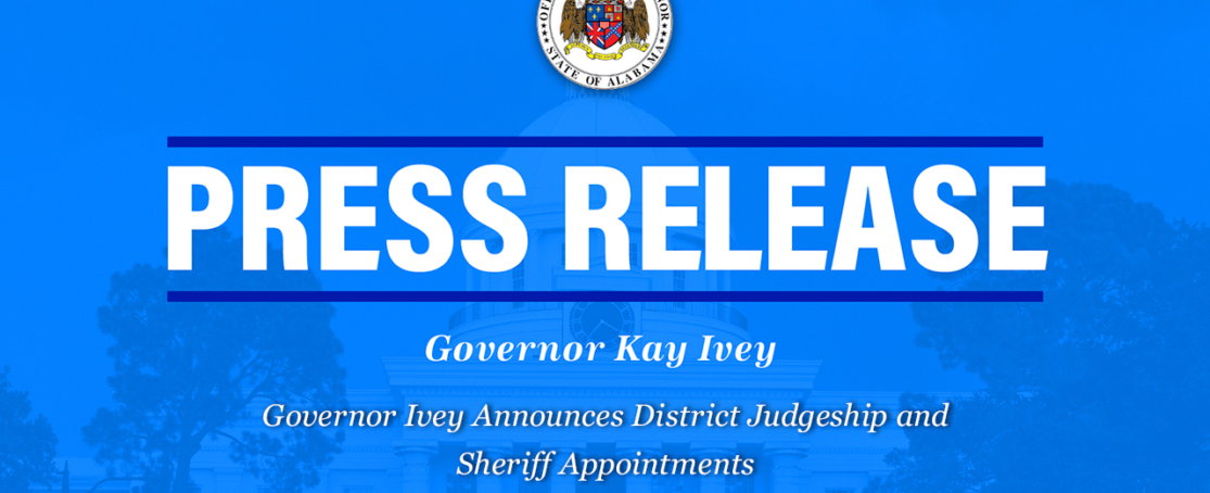 MONTGOMERY – Governor Kay Ivey on Monday announced appointments to fill vacancies in three district judgeship positions and one sheriff position across the state. Lauderdale County District Judgeship Governor Ivey has appointed William D. Motlow, III, as District Judge for … Continue reading Governor Ivey Announces District Judgeship and Sheriff Appointments