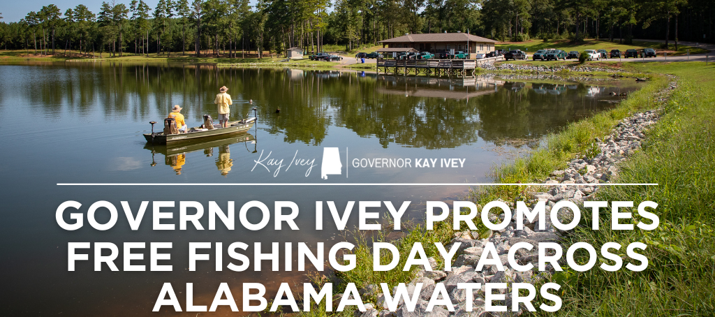 MONTGOMERY – Governor Kay Ivey on Friday invited the public to participate in Alabama’s Free Fishing Day on Saturday, June 7. The event allows residents and non-residents to enjoy the outstanding fishing Alabama has to offer without purchasing a fishing … Continue reading Governor Ivey Promotes Free Fishing Day Across Alabama Waters