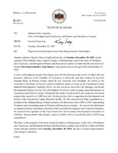 Governor Ivey Flag-Lowering Memo for Former State Rep. Alan Harper