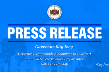 Governor Ivey Reminds Alabamians to Take Part in Annual Severe Weather Preparedness Sales Tax Holiday