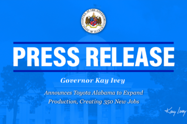 Governor Ivey Announces Toyota Alabama to Expand Production, Creating 350 New Jobs