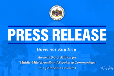 Governor Ivey Awards $53.5 Million for ‘Middle-Mile’ Broadband Service to Communities in 24 Alabama Counties