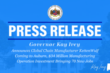 AUBURN – Governor Kay Ivey on Monday announced German-based chain manufacturer KettenWulf will launch a new manufacturing operation in Auburn, Alabama. This is a significant milestone…